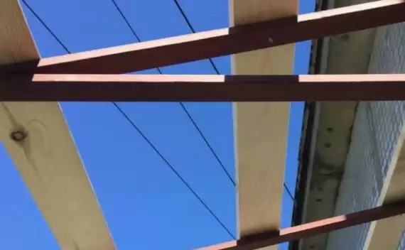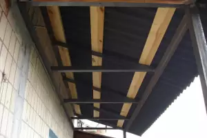 Поверх металлических ферм устанавливается деревянная обрешётка, поверх которой кладётся кровельный материал. Независимую крышу можно установить отдельно от остекления и опор, она является самостоятельным элементом балкона. Поэтому если в планах остекления пока нет, но вы хотите защитить балкон от дождя и снега, то независимый тип крыши — ваш вариант.