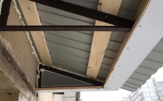 Компания «Балконные Метры» выполнит установку крыши над вашим балконом с кровлей из профнастила. Мы сами изготовим уголки-фермы или опорно-стоечную конструкцию, а также закупим материалы для крыши и произведём монтаж за 1 день.